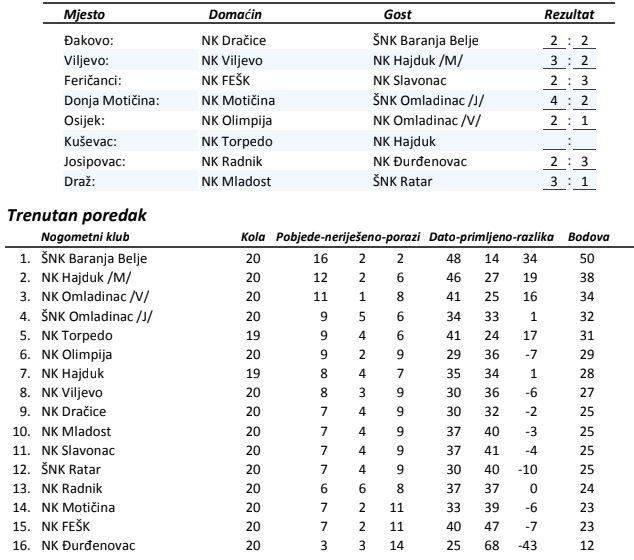 NAJNOVIJESPORT 1. ŽNL Osječko-baranjska – rezultati i tablica Objavio Marko Balukčić - 1. travnja 2024. FacebookTwitterViber Foto:Pixabay Za vikend su odigrane utakmice 20. kola 1. ŽNL osječko-baranjske – Seniori U nastavku teksta vam donosimo rezultate i tablicu 1. ŽNL osječko-baranjske: Podjeli ovo: Share on X(Otvara se u novom prozoru) X Share on Facebook(Otvara se u novom prozoru) Facebook