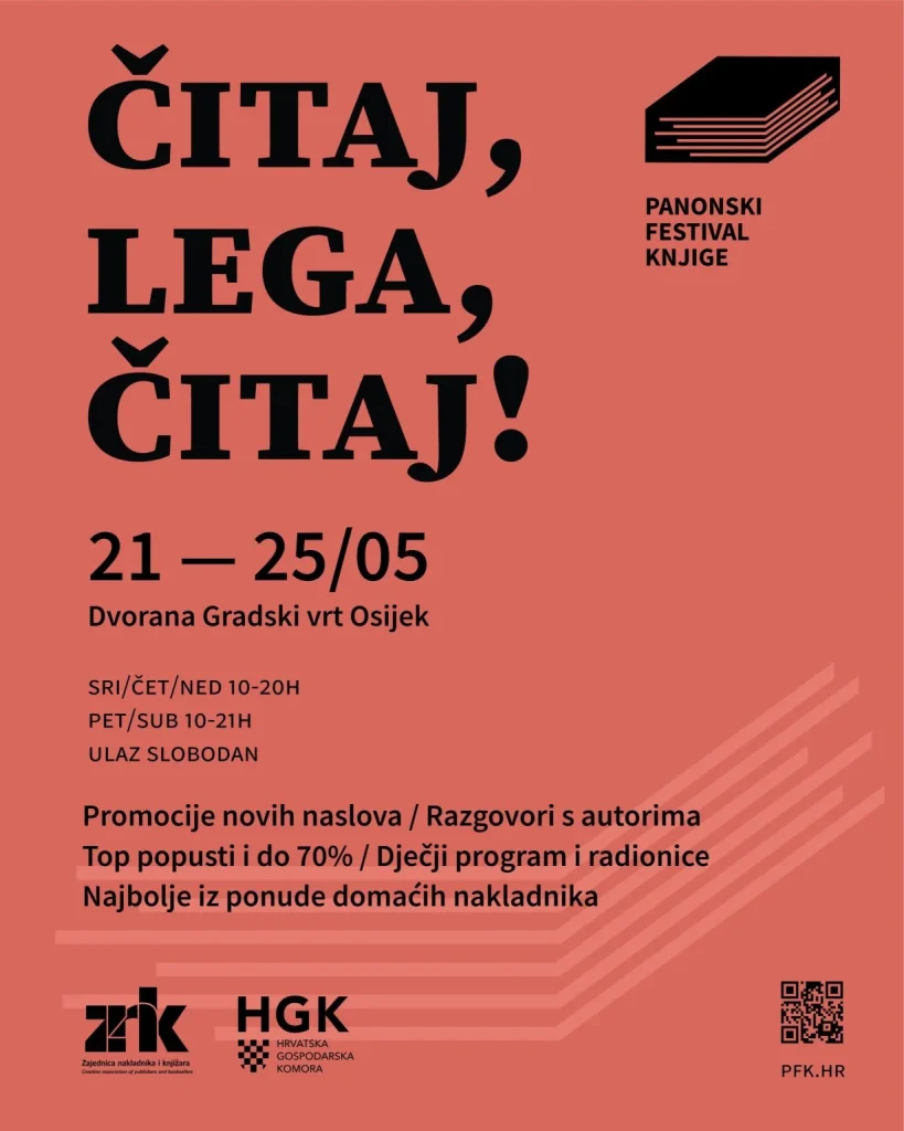 Grad Osijek domaćin je Festivala koji se ove godine održava od 21. do 25. svibnja 2025. u sportskoj dvorani Gradski vrt s glavnim ciljem promocije knjige i pisane riječi te poticanja čitanja domaće i strane literature.