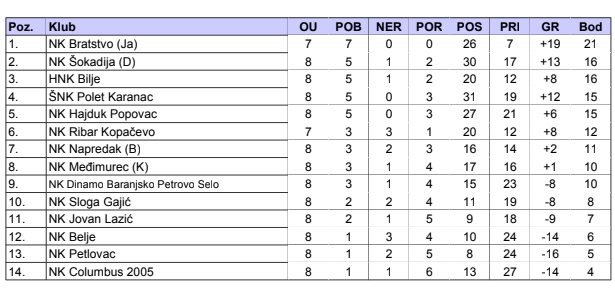 | NK Bratstvo (Ja) – NK Šokadija (D) | 3:1 |