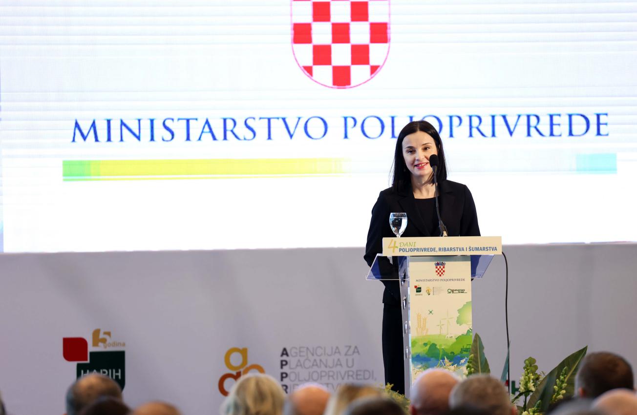 Govoreći o aktualnom stanju hrvatske poljoprivrede i šumarstva kazala je kako je ono bolje nego što se obično misli. Podsjetila je da je vrijednost poljoprivredne proizvodnje 2017. godine iznosila oko 2,2 milijarde eura, a na kraju 2022. godine 3,2 milijarde eura, a ne očekuje pad ni za 2023. godinu. U vezi povlačenju sredstava EU iz Programa ruralnog razvoja – vrijednog više od 3,2 milijarde eura, s tim da je do sada ugovoreno 97 posto sredstava, dok je isplaćeno više od 86 posto – poručila je da se programi dobro koriste unatoč krizama, poremećajima i izazovima, a poljoprivrednici ne odustaju od svoje djelatnosti nego ulažu svoja najvrjednija sredstva, svoj ukupni ljudski i materijalni kapital i idu dalje.