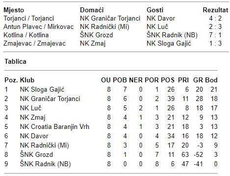 PREPORUČENOSPORT Baranjska liga – rezultati i tablica Objavio Marko Balukčić - 8. studenoga 2021. FacebookTwitterViber foto:pixabay Za vikend su odigrane utakmice 9. kola Baranjske lige. U nastavku teksta vam donosimo rezultate i tablicu Baranjske lige: