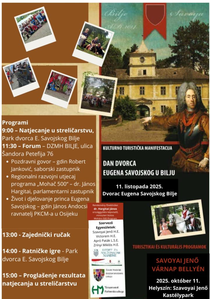 Dan Dvorca Eugena Savojskog u Bilju”, obilježava se ove subote, 11. listopada 2025. godine, u prekrasnom ambijentu Dvorca Eugena Savojskog u Bilju.