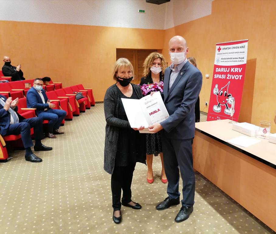 Svake godine 25. listopada obilježava se Dan dobrovoljnih davatelja krvi u Republici Hrvatskoj, kada u čast i zahvalnost Hrvatski Crveni križ Gradsko društvo Crvenog križa Osijek organizira svečanost dodjele zahvalnica i priznanja za višestruke dobrovoljne davatelje krvi na području svog djelovanja. Zbog situacije uzrokovane epidemijom COVID-19, prošlogodišnja je svečanost nažalost otkazana, stoga tijekom rujna i listopada 2021. godine Gradsko društvo Crvenog križa Osijek održava dvije svečanosti podjele zahvalnica i priznanja. Rujanska dodjela priznanja održana je danas u Nadbiskupskom vikarijatu, a nazočio joj je i zamjenik župana Osječko-baranjske županije Josip Miletić koji je čestitao svim dobrovoljnim darivateljima krvi na nesebičnom davanju sebe u pomaganju drugima.