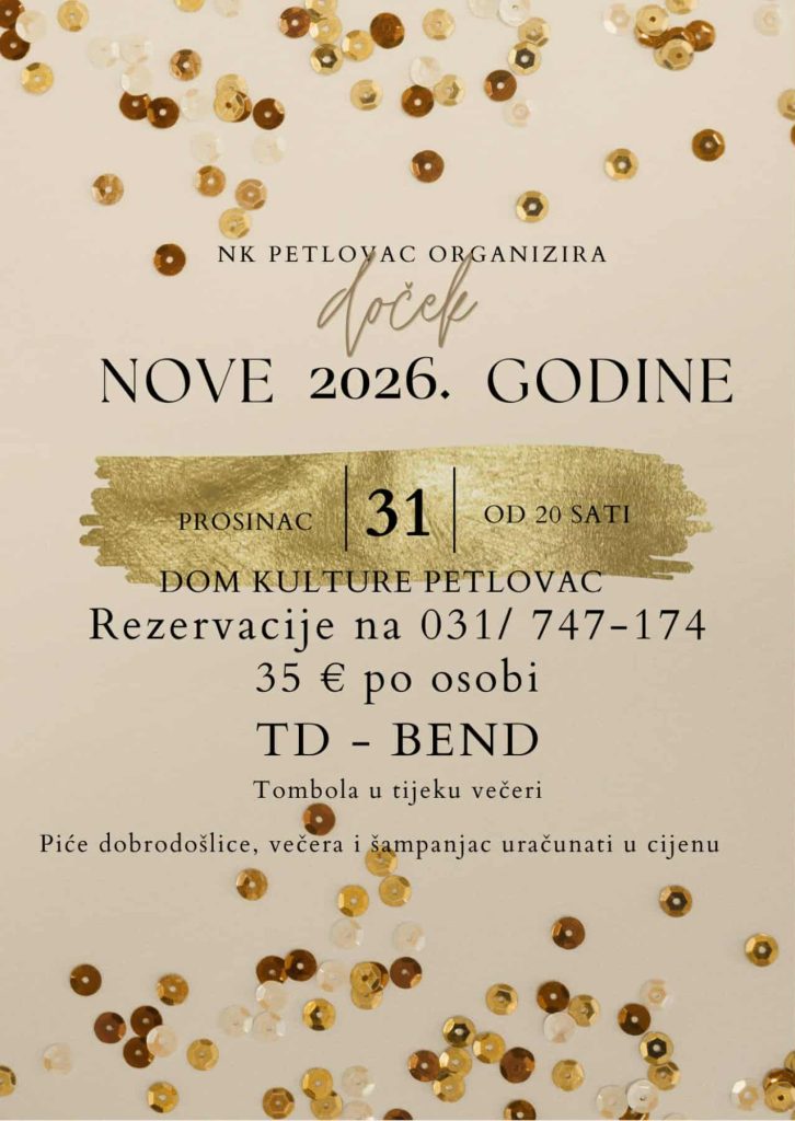 Dom kulture Petlovac ove godine priprema doček Nove 2026. godine uz vrhunsku zabavu i bogat program za sve posjetitelje. Organizatori najavljuju odličnu atmosferu, ukusnu večeru, piće dobrodošlice te šampanjac u ponoć, kao i tombolu tijekom večeri koja će dodatno podići raspoloženje.