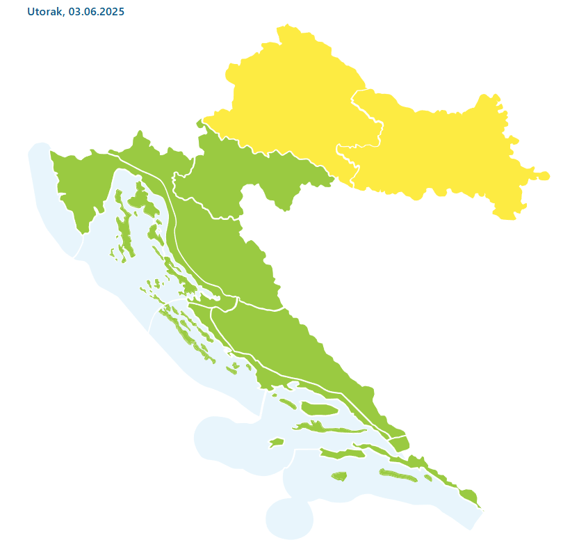 “Budite na oprezu zbog mogućih jačih grmljavinskih nevremena. Posebno pripazite u izloženim područjima kao što su planine, šume i livade odnosno otvoreni tereni. Mogući su prekidi u aktivnostima na otvorenom.”, upozorava DHMZ.