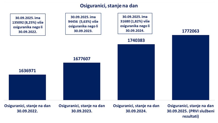 Krajem rujna 2025. u evidenciji je 1.772.063 osiguranika što je više u odnosu na prijašnje godine.