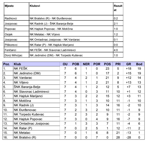 U nastavku teksta vam donosimo rezultate i tablicu I. ŽNL osječko-baranjske – Seniori: