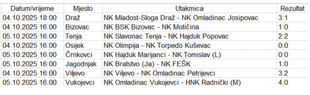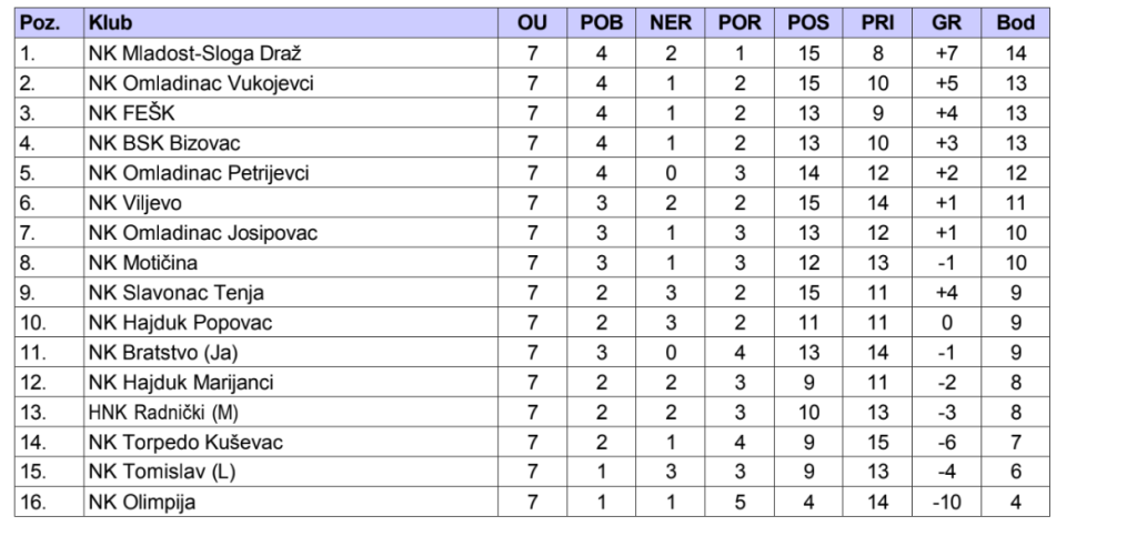 U nastavku teksta vam donosimo rezultate i tablicu I. ŽNL Beli Manastir: