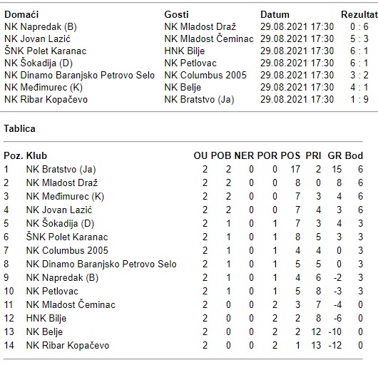U nastavku teksta vam donosimo rezultate i tablicu II. ŽNL Beli Manastir: