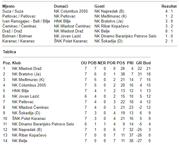 U nastavku teksta vam donosimo rezultate i tablicu II. ŽNL Beli Manastir: