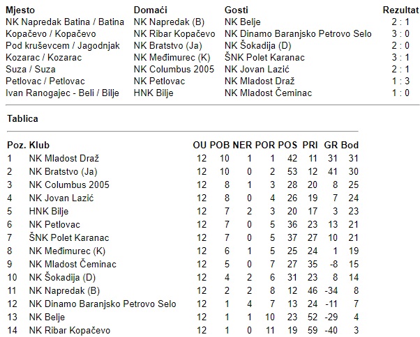 Za vikend su odigrane utakmice 12. kola II. ŽNL Beli Manastir.