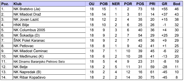 U nastavku teksta vam donosimo rezultate i tablicu II. ŽNL Beli Manastir: