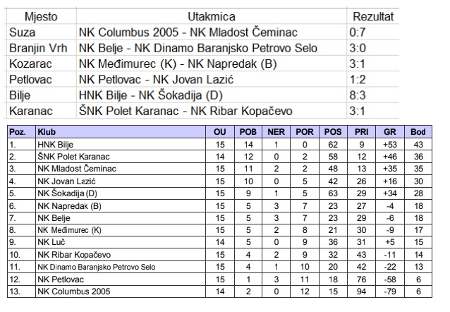 U nastavku teksta vam donosimo rezultate i tablicu II. ŽNL Beli Manastir: