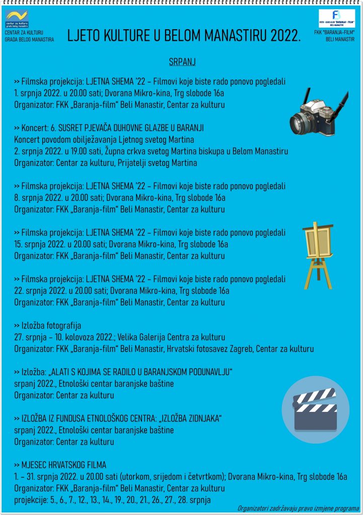 Brojne manifestacije će se održati tijekom srpnja i kolovoza na različitim lokacijama u Belom Manastiru.