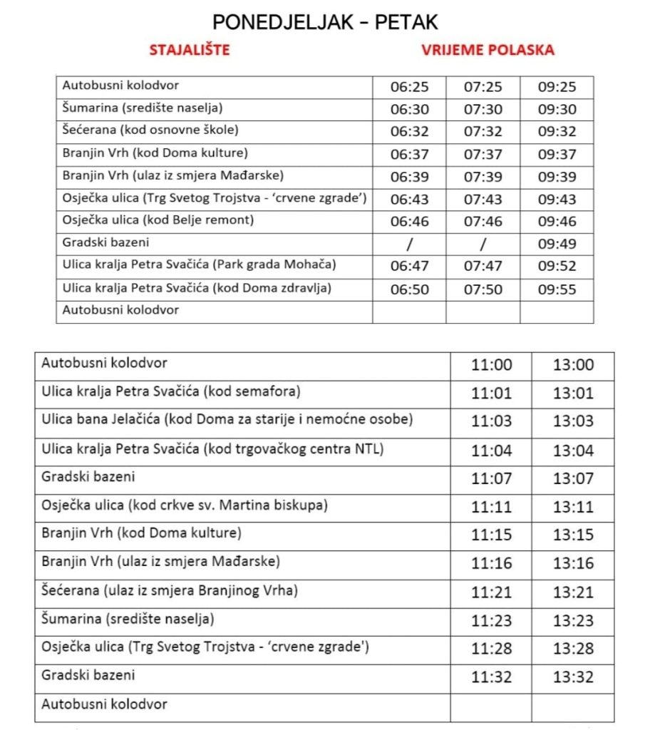 Povodom završetka školske godine te početka kupališne sezone na belomanastirskim Gradskim bazenima, od ponedjeljka, 16. lipnja, uvodi se novi vozni red javnog autobusnog prijevoza.