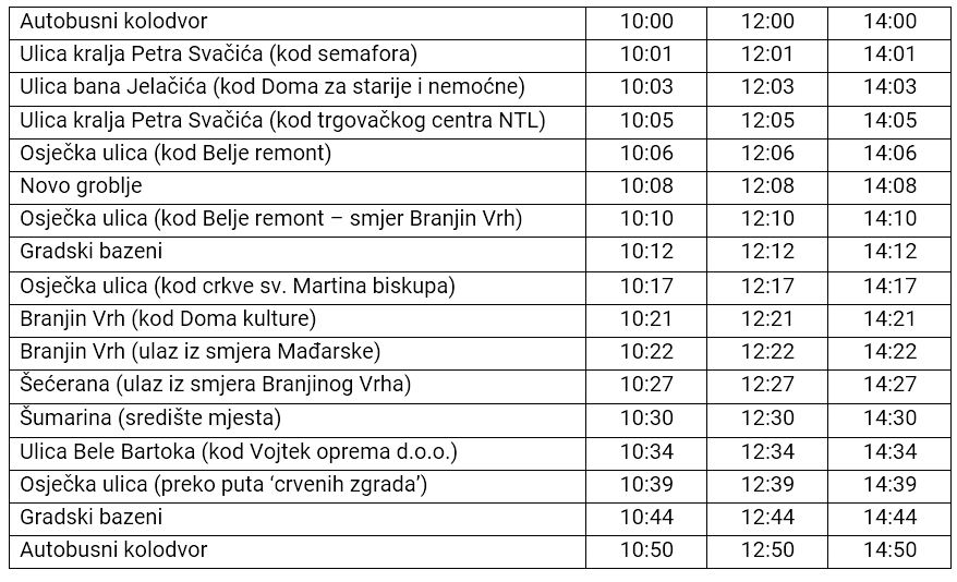 Projekt ‘Gradske autostaze’ predstavlja komunalni linijski prijevoz putnika, odnosno javni autobusni prijevoz na području Belog Manastira i prigradskih naselja koji je za sve korisnike usluge besplatan.