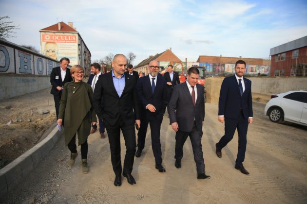 Gradilište podvožnjaka u Ulici sv. L. B. Mandića u Osijeku, gdje su u tijeku intenzivni radovi, jučer su obišli ministar mora, prometa i infrastrukture Oleg Butković, župan Osječko-baranjske županije Ivan Anušić, gradonačelnik Grada Osijeka Ivan Radić, v.d. ravnatelja SAFU-a Dragan Jelić, ravnatelj Uprave za financije i informacijsko-telekomunikacijske sustave MRRFEU-a Davor Huška, predsjednik Uprave Hrvatske ceste d.o.o. Josip Škorić, predsjednik Uprave Osijek-Koteksa d.d. Zoran Škorić i njihovi suradnici.