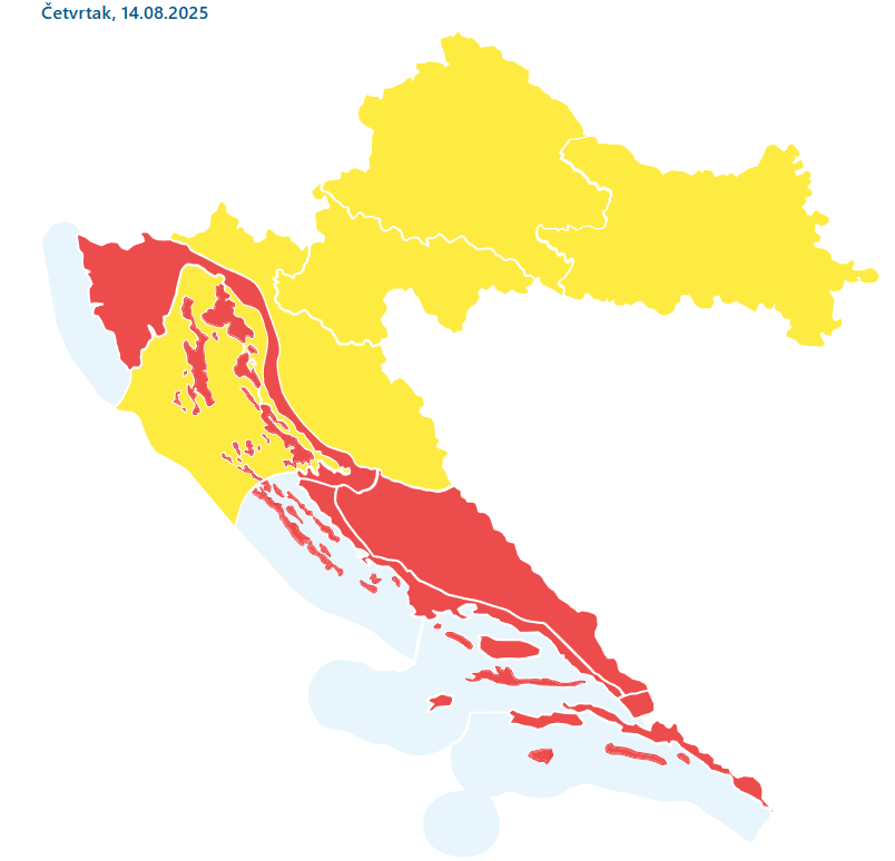 “Maksimalna temperatura će biti veća od 35 °C. Budite na oprezu zbog vrućina koje se očekuju. Mogući su zdravstveni rizici među osjetljivom populacijom, ponajprije kod starijih i kod male djece.”, upozorava DHMZ.