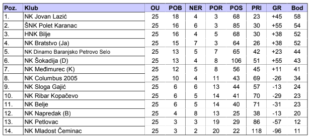 U nastavku teksta vam donosimo rezultate i tablicu 2. ŽNL Beli Manastir: