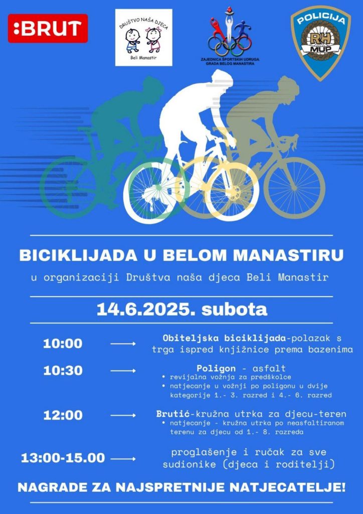 U suradnji s organizatorima biciklističke utrke BRUT – Baranja rural trail i Policijskom upravom osječko-baranjskom, pod pokrivetljstvom Zajednice sportskih udruga Grada Belog Manastira, Društvo naša djeca Beli Manastir u subotu 14. lipnja 2025. organizira biciklijadu za djecu predškolskog i osnovnoškolskog uzrasta i roditelje.