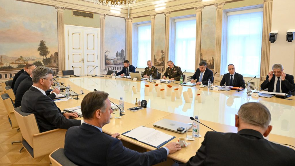 U srijedu, 1. travnja 2026. godine u Banskim dvorima održane su sjednice Vijeća za nacionalnu sigurnost i Vijeća za obranu, koje su zajednički sazvali predsjednik Republike i vrhovni zapovjednik Oružanih snaga Zoran Milanović te predsjednik Vlade Andrej Plenković.