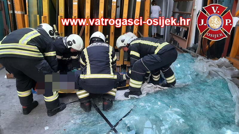 Oko dvije i pol tone stakla palo je na radnika jedne osječke tvrtke koja se bavi ugradnjom stakla i to prilikom urušavanja regala, potvrdio je za SiB.hr zapovjednik JVP Osijek Goran Ivković.