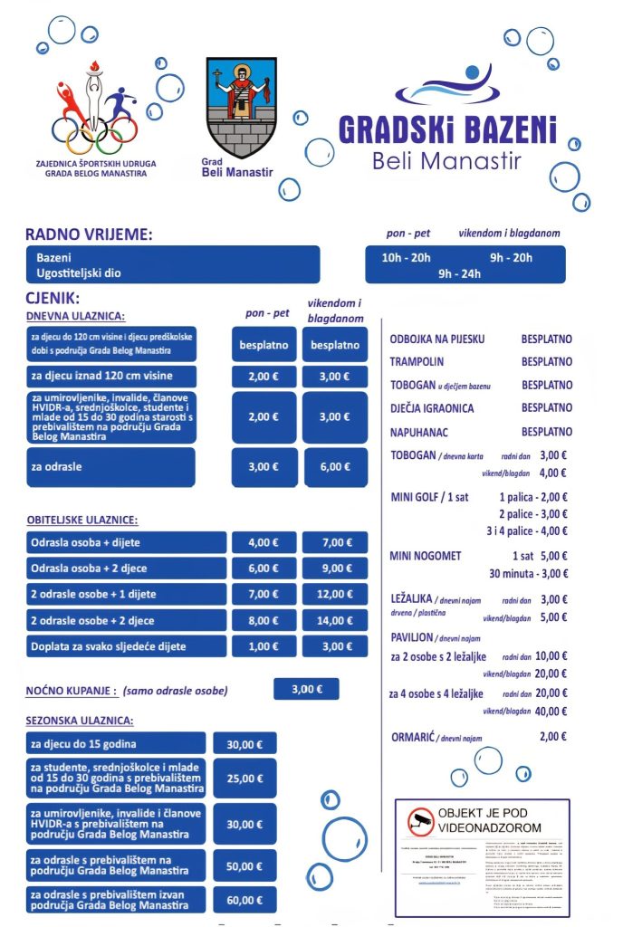 Sutra, 13. lipnja, s početkom u 10 sati se otvaraju bazeni u Belom Manastiru