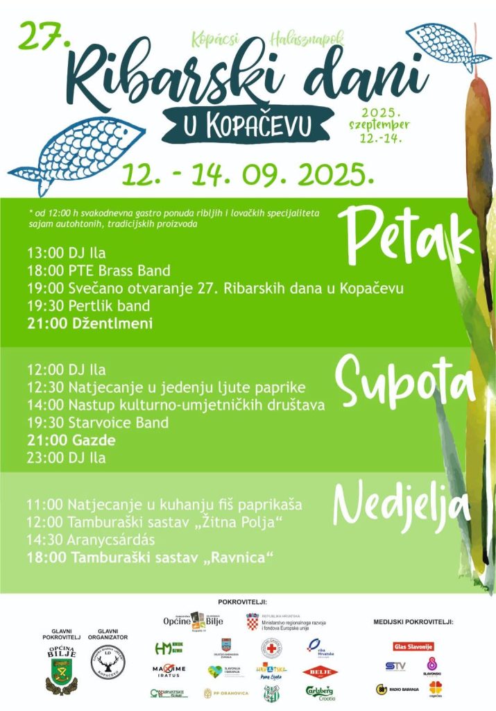 Ribarski dani u Kopačevu se održavaju ovog vikenda – 12. do 14. rujna 2025. godine