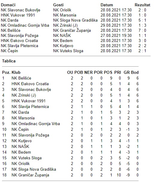 NAJNOVIJESPORT Treća HNL Istok – rezultati i tablica Objavio Marko Balukčić - 30. kolovoza 2021. FacebookTwitterViber foto:pixabay Za vikend je odigrano 2. kolo Treće HNL Istok. U nastavku teksta vam donosimo rezultate i tablicu Treće HNL Istok– Seniori: Podjeli ovo: Share on X(Otvara se u novom prozoru) X Share on Facebook(Otvara se u novom prozoru) Facebook