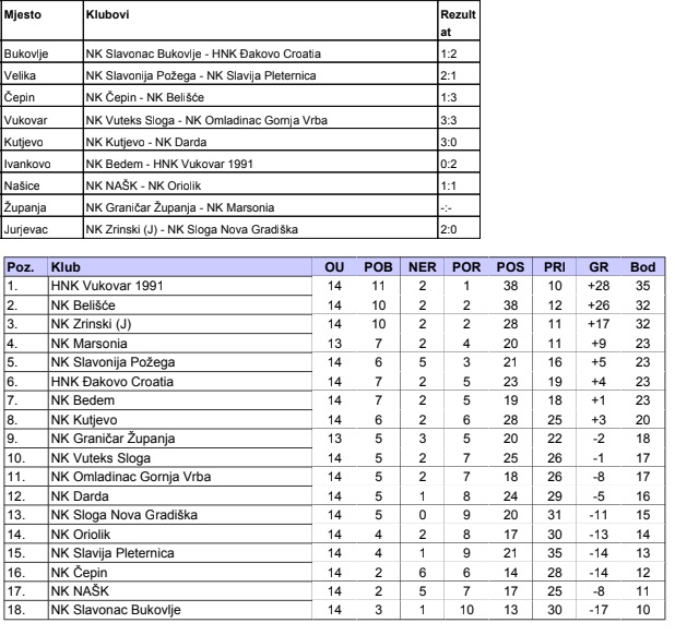 Za vikend je odigrano 14. kolo Treće HNL Istok.
