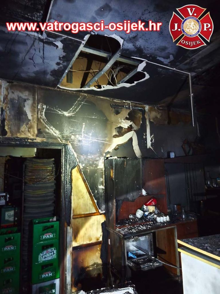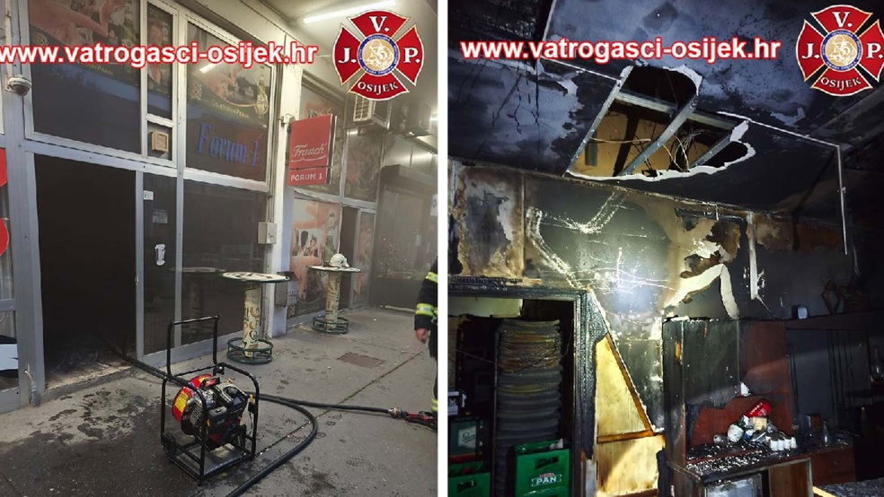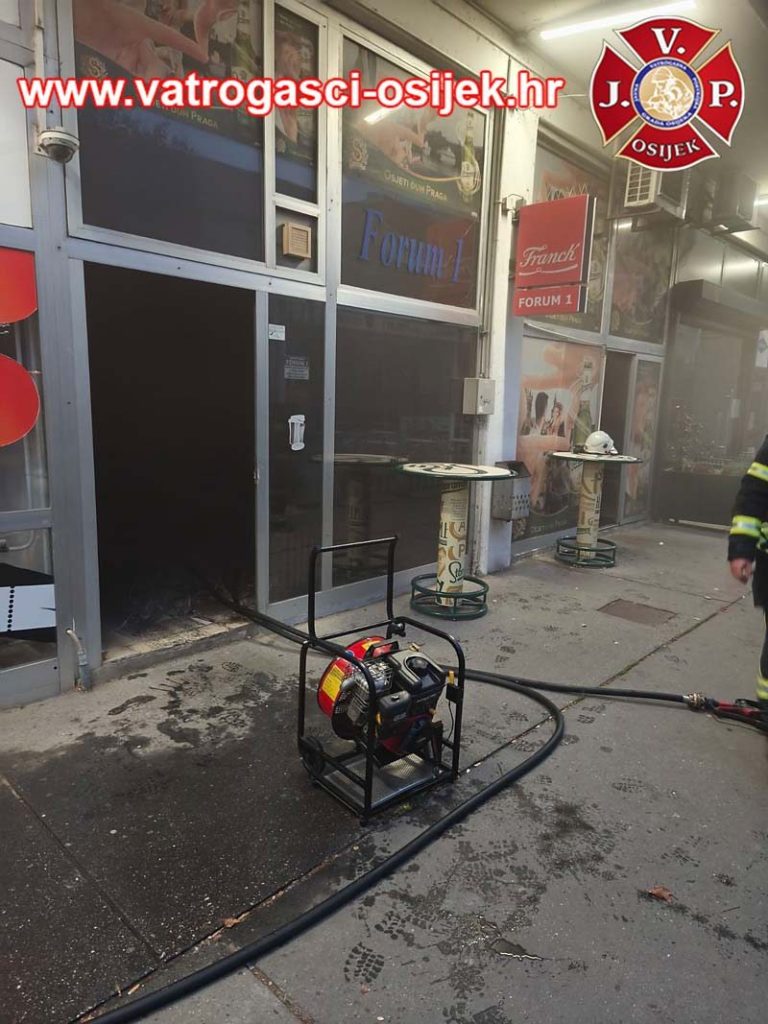 Požar su ugasili pripadnici Javne vatrogasne postrojbe grada Osijeka. Radi se o jednom od najstarijih osječkih ugostiteljskih objekata Forum 1.