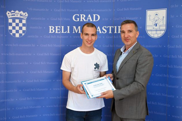 Danas su gradonačelnik Tomislav Rob i njegov zamjenik Goran Hes primili učenike 4.Q razreda Prve srednje škole Beli Manastir, Zoltana Palinkaša, Antonija Hibla i Leona Kobijaka te mentora Marija Salaija koji su na državnom natjecanju iz informatike osvojili drugo mjesto.