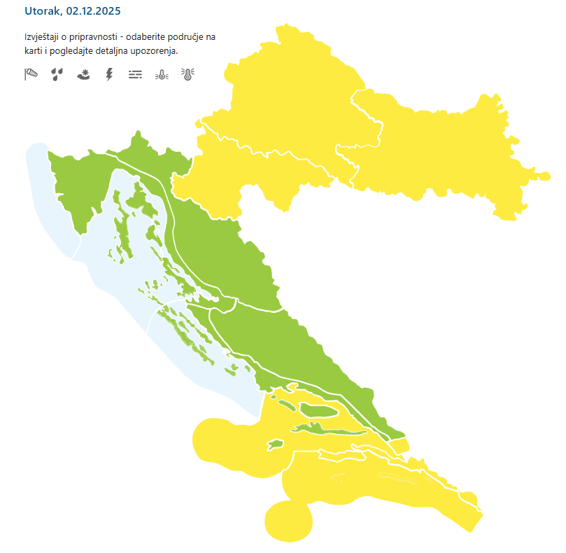“Budite na oprezu zbog rasprostranjene, lokalno guste magle. Moguć je izraženiji utjecaj na svakodnevne vanjske aktivnosti. Moguć je prekid rada zračnih luka te kašnjenja kao i otežano prometovanje uslijed izrazito smanjenje vidljivosti zbog čega putovanja mogu potrajati dulje od uobičajenog.”, upozorava DHMZ.