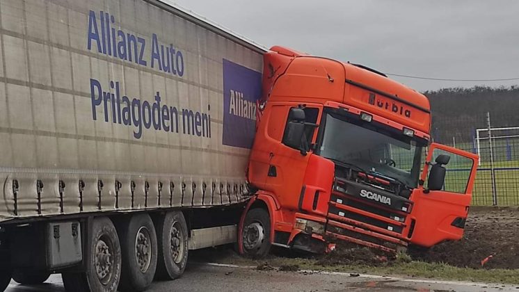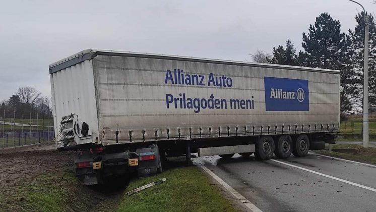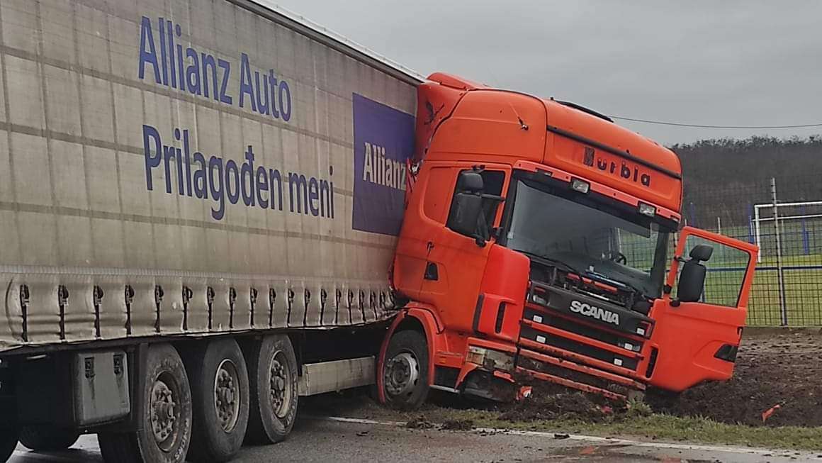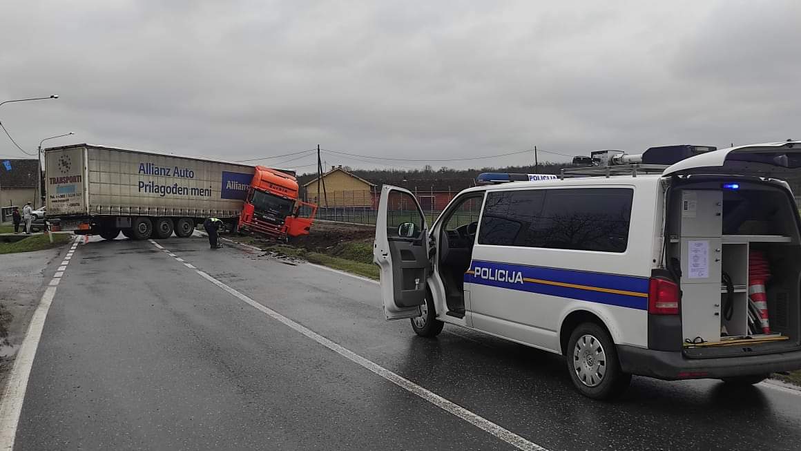 U Kozarcu dogodila se prometna nesreća u kojoj je kamion zagrebačkih registracija sletio u kanal prednjim krajem vozila i blokirao oba traka.