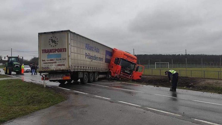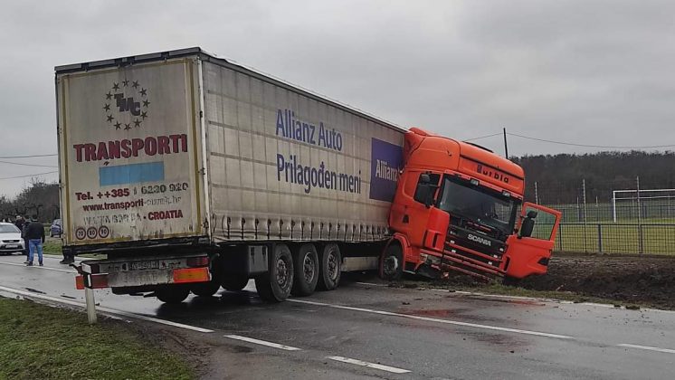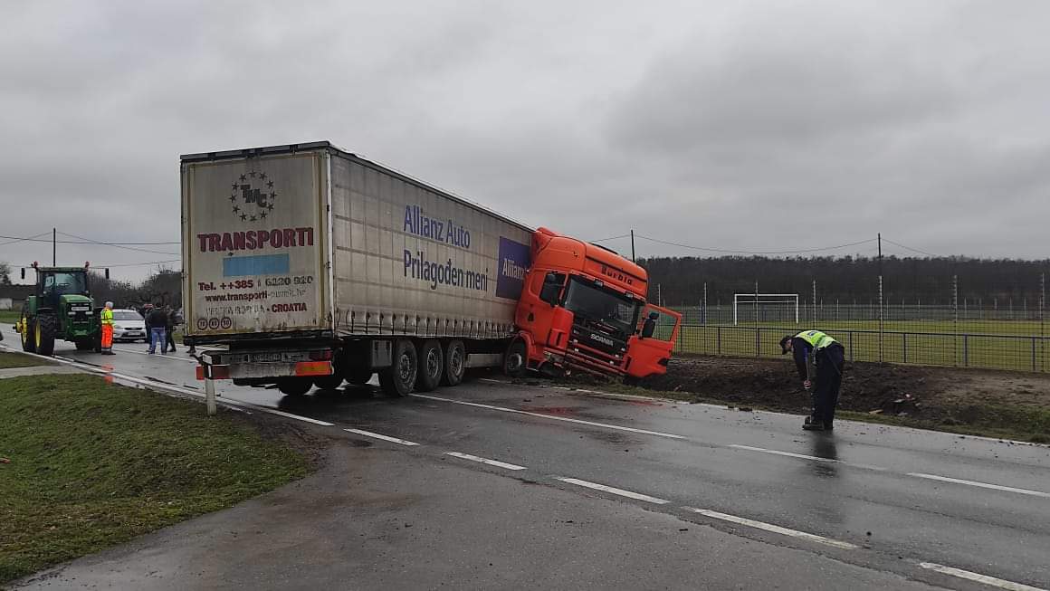 Kako neslužbeno doznajemo kretao se iz smjera Belog Manastira te zbog skliskog kolnika i neprilagođene brzine naglo skrenio u zavoju te se okrenuo, prednjim krajem završio u kanalu, zaustavio se i blokirao oba prometna traka.