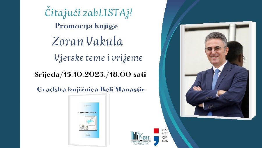 Zoran Vakula gostovat će u Gradskoj knjižnici Beli Manastir, 15. listopada 2025. u 18.00 sati
